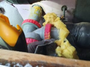마지막으로 청음식 탐지기를 이용해 동파 위험이 높은 지점을 체크했습니다. 이 방식은 배관 속에서 물이 흐르거나, 새는 소리를 판별하여 보다 정밀한 위치 파악에 도움을 줍니다. 복합적인 탐지를 통해 확인한 결과, 안방 벽체 쪽 직수 배관에서 문제가 발생하고 있음이 확실해졌습니다.