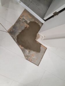 수리가 끝난 후에는 바닥 수정 작업이 뒤따랐습니다. 파쇄 작업으로 드러났던 바닥을 다시 안정적으로 덮는 ‘미장’ 과정을 거쳐 바닥 구조체를 정상화시켰습니다. 이는 안전성과 누수 방지를 위한 기초 작업으로 보시면 됩니다. 저희는 현장이 다시 원활하게 사용할 수 있도록 마감 전 마지막 점검까지 꼼꼼히 진행했으며, 아랫집에도 물방울 하나 남지 않도록 조치를 완료했습니다. 모든 과정은 고객님에게 설명드리며, 최종 확인 후 작업을 마무리했습니다.